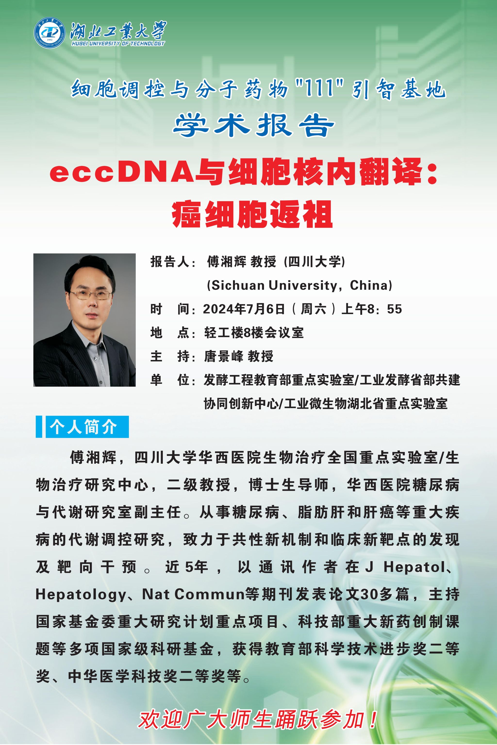 第184期 细胞调控与分子药物“111”引智基地学术报告
